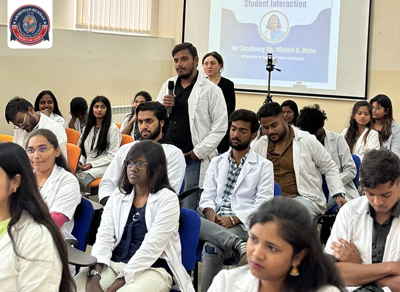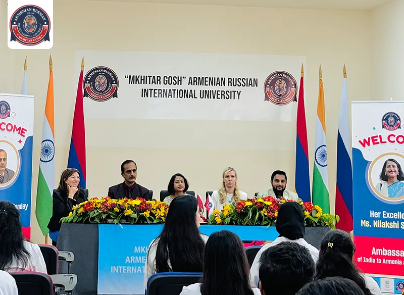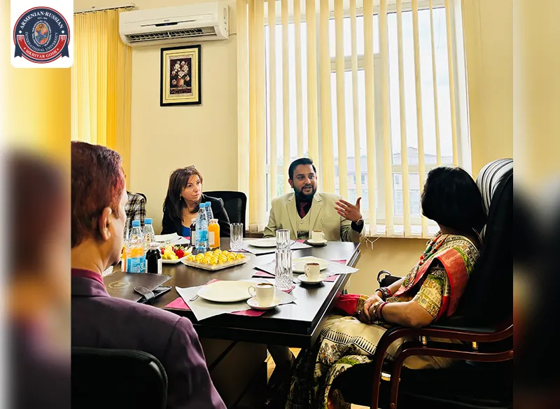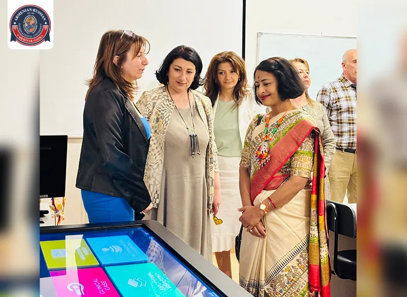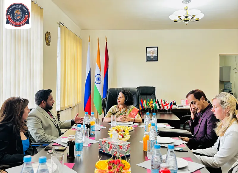 11th May 2024, marked a momentous occasion at the Mkhitar Gosh Aremian Russian International University. The university hosted the esteemed Ambassador of India to Armenia and Georgia, Ms. Nilakshi Saha Sinha. It was an enriching experience marked by meaningful discussions aimed at fostering deeper ties between both nations. These exchanges epitomized our unwavering dedication to nurturing international understanding and fostering collaboration across borders. Such encounters serve as a testament to our shared commitment to building a more interconnected and harmonious world.