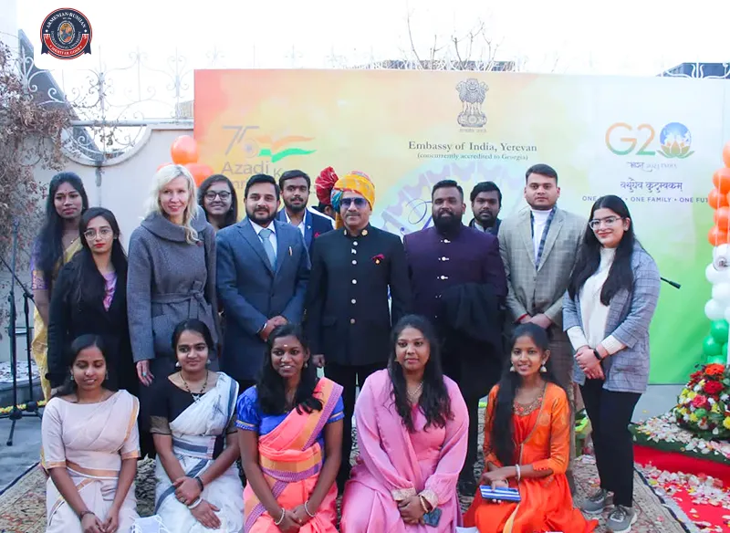 On 26th January 2023, Indian students of Armenian-Russian International University took part in the grand event of celebrating the 74th Republic Day of India at the Embassy of India in Armenia. Every year, Indians celebrate this day in remembrance of the sacrifice of many great Leaders and Martyrs that led India to freedom. Many officials graced the occasion with their presence.