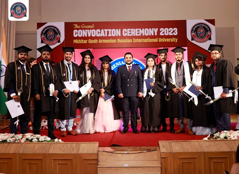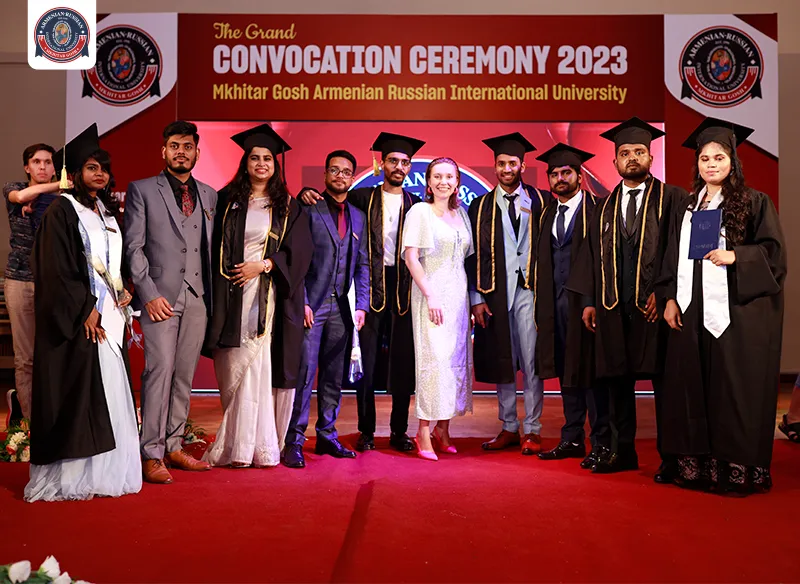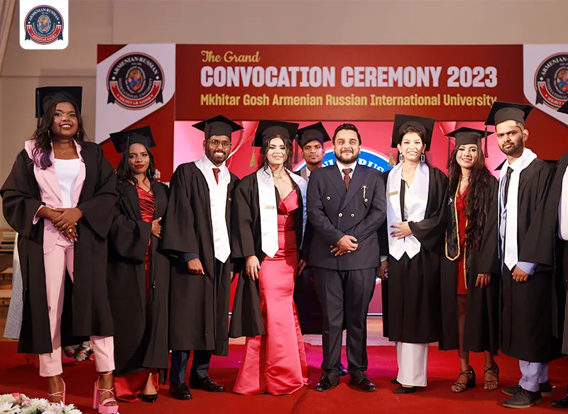 On August 07, 2023, a significant milestone was reached for the graduating class of 2023 at Mkhitar Gosh Armenian-Russian International University, who are now ready to embark on diverse medical careers around the globe. The event also served as a tribute to Mr. Hayk Mkrtich Derdzyan (1945-2020), the visionary behind the establishment of Mkhitar Gosh Russian American International University. The occasion was graced by a distinguished gathering of individuals from various fields. Notable attendees included Mr. Aditiya Kumar Pandey, Second Secretary of the Embassy of India in Armenia & Georgia, Dr. Faizan Imtiyaz Balawala, Rector of Mkhitar Gosh Armenian-Russian International University, and Dr. Anahit Antonyan, Vice Rector of Medical Specialties and Research at Mkhitar Gosh Armenian-Russian International University. Alongside them were esteemed doctors and educators from the university, each contributing words of encouragement and wisdom to the newly graduated doctors. Mr Ramji Gulati, an Indian Singer, witnessed the grand event and shared his words of encouragement to the graduating batch. As ARIU extends its heartfelt congratulations, the institution also offers its best wishes to the Class of 2023 for their future endeavors.